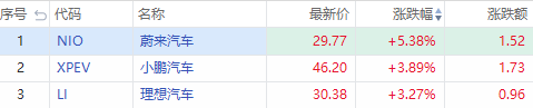 新能源汽车股普遍拉升,蔚来汽车(NIO)涨超5%,小鹏汽车(XPEV)涨超3%,理想汽车(LI)涨超3%。