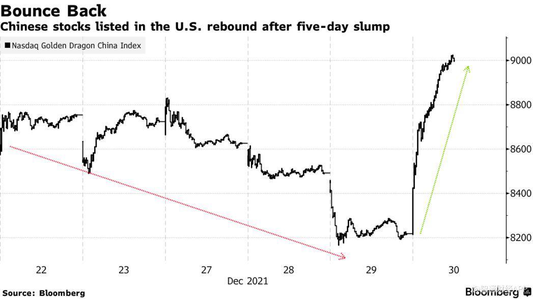 投资者重新涌入了今年备受打压的中概股中,在美上市的中国公司股票在最近经历了五天的暴跌后,周四出现反弹。