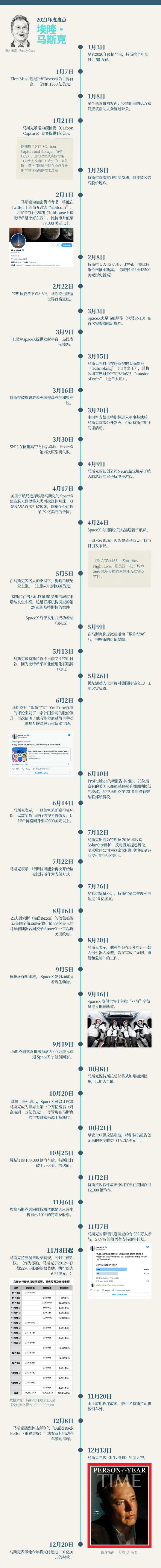如果评选年度商界流量担当,埃隆·马斯克(Elon Musk)会夺得桂冠,他还真的在年末当选为《时代周刊》封面人物。对他而言,2021年一年发生的故事,比其他企业家三年加起来还精彩(折腾)。这一年,他因为和女友分手剪了“最丑发型”,这一年,他成为全球首个万亿美元富豪,虽然是纸面意义上的,但他依然要缴纳超110亿美元的税款;这一年,他成了币圈大佬,又是最大的空头;这一年,他依然是杰夫·贝索斯的死敌;这一年,他给猴子植入了脑芯片;这一年,他带着老妈一起主持美国著名综艺《周六夜现场》;这一年,他向所有人展示,自己的脑洞真的是深不见底。