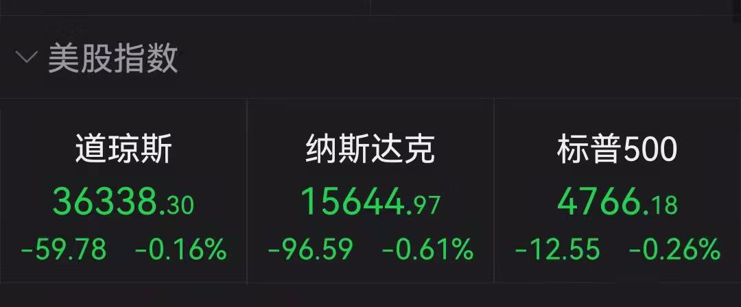 Wind数据显示,截至收盘,道指跌0.16%,报36338.3点;标普500指数跌0.26%,报4766.18点;纳指跌0.61%,报15644.97点。2021年全年,道指累计涨18.73%,标普500指数累计涨26.89%,纳指累计涨21.39%。
