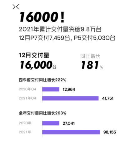 12月交付16000!小鹏汽车2021全年交付成绩公布