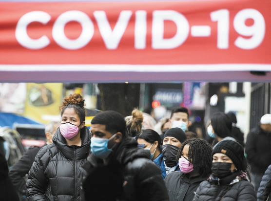 2021年12月29日,人们在美国纽约街头的新冠检测点排队等候检测。