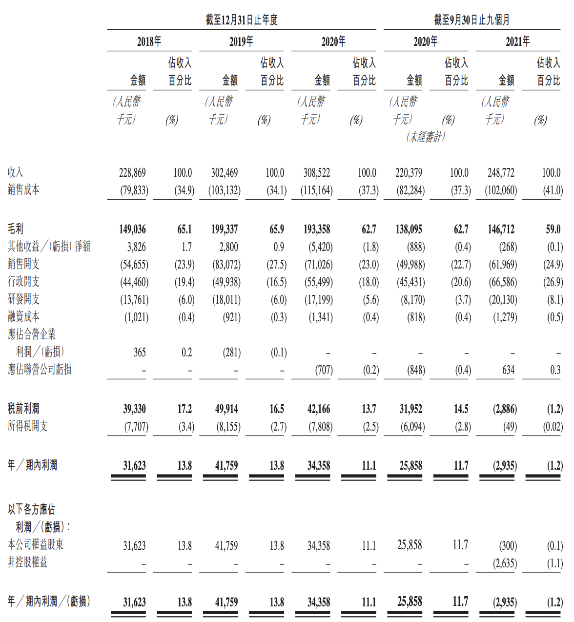2021年前9个月(前三季度),派尔特医疗的营收为2.49亿元,2020年同期的营收为2.20亿元;期内亏损(净亏损)为293.5万元,2020年同期的期内利润为2585.8万元,由盈利转为亏损。