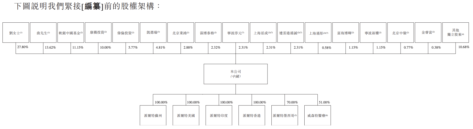机构方面,软银中国基金持股11.15%,康桥投资持股10.0%,伟伦投资持股5.77%,北京秉鸿持股为2.88%。此外,上海涌铧投资管理、东方富海投资、北京中富投资等均持有派尔特医疗的股份。