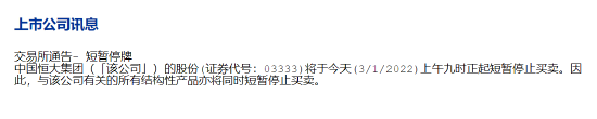 1月3日消息,中国恒大(03333.HK)在香港暂停交易。
