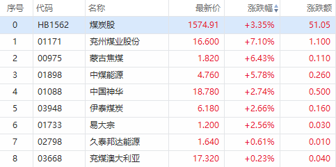 华盛资讯1月3日消息,煤炭板块快速拉升,兖州煤业股份涨超7%、蒙古焦煤涨超6%、中煤能源涨超5%%,中国神华涨超2%。
