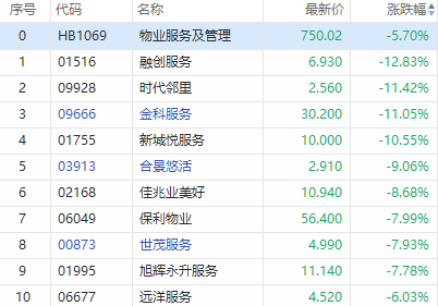 华盛资讯1月3日消息,物管股跌幅扩大,融创服务大跌12.83%创历史新低,时代邻里、金科服务、新城悦服务跌逾10%,佳兆业美好跌逾8%,合景悠活、世茂服务、雅生活服务等纷纷走低。