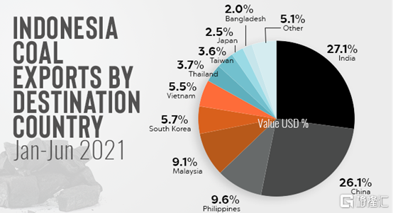 自2005年超过澳大利亚后,印尼一直是世界商最大的煤炭出口国,超过一半的需求来自中国和印度。