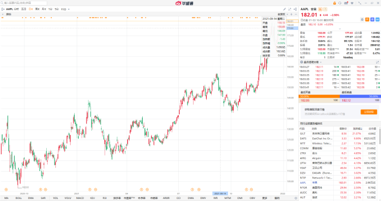 之所以强调“触及”,是因为苹果在盘中达到182.88美元历史新高后小幅回落,截至发稿涨幅为2.52%,对应市值2.99万亿美元。即便如此,这也意味着消费电子巨头的市值在过去两年里翻了整整三倍,也是美股不断创新高的主要动力来源。
