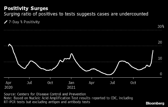 与此同时,PCR检测阳性率为17%,为2020年4月以来最高。数据表明omicron肆虐之际很多病例并未被检测到,可能的原因包括人们在家中自己进行快速检测或根本未做检测。