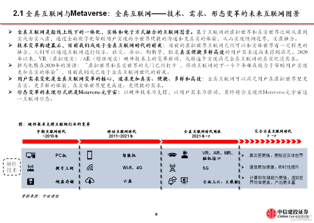 据马化腾在2020年的演讲:“虚拟世界和真实世界的大门已经打开 ,移动互联网的下一个十年都在致力于帮助用户实现更加真实的体验”,目前我们或已处于全真互联网世代的前夜。