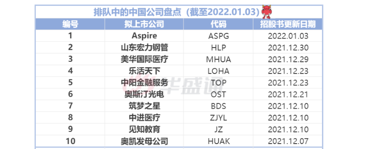 此外,近期有多家在SEC排队等待上市的中国公司更新了招股书,其中包括深圳电子烟品牌Aspire。另有山东宏力钢管公司上周递交美股IPO申请: