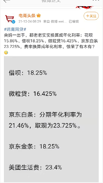 前两天,有条微博全面整理了,互联网金融贷的年利率。