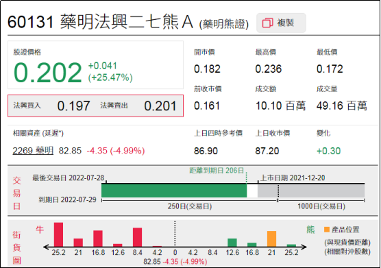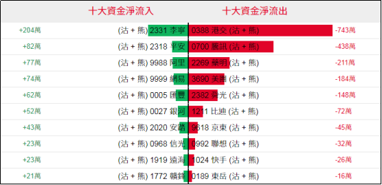 淡仓(认沽证及熊证)方面,周二李宁相关淡仓单日录得约204万港元资金净流入,平安、阿里等相关淡仓亦录得少量资金净流入;相反,港交相关淡仓单日录得约743万港元资金净流出,腾讯、药明等相关淡仓单日亦录得少量资金净流出。