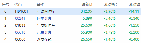 互联网医疗板块午后持续走低,阿里健康跌5%
