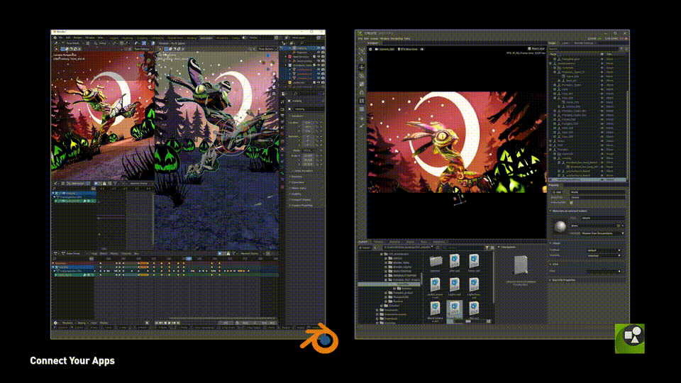 通过Omniverse,GeForce RTX Studio创作者可以将他们最喜爱的3D设计工具连接到一个场景中,并同时在各应用之间进行创作和编辑。