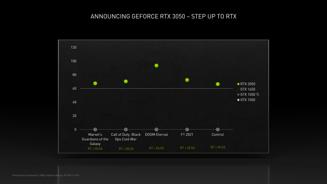 英伟达表示,在1080p分辨率下,RTX 3050 可以轻松60帧运行目前的3A游戏大作 。不过可能需要进行一些画面设置并关闭光追特效。