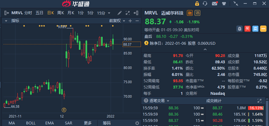 他对迈威尔科技的目标股价为98美元,迈威尔科技昨日收跌1.19%,至88.37美元。