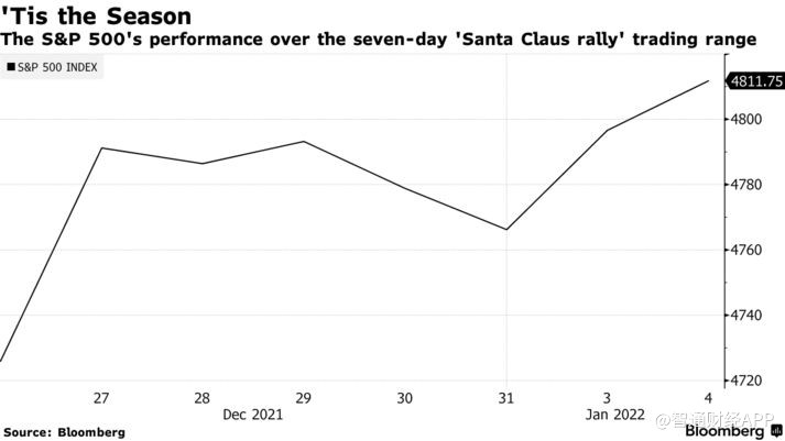 圣诞老人给投资者送来了一份迟来的礼物。根据 LPL Financial 的数据,标普500指数在所谓的“圣诞行情”(Santa Claus Rally)期间创下了九年来的最大涨幅,这可能预示着美国股市2022年将走强。