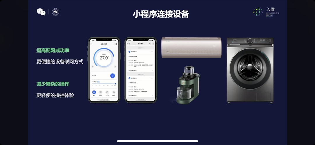 今年的小程序也有了更多连接硬件设备的案例,空调、洗衣机、咖啡机……通过连接硬件的功能,小程序给用户提供了一种更便捷的设备联网方式,更轻便的操控体验。