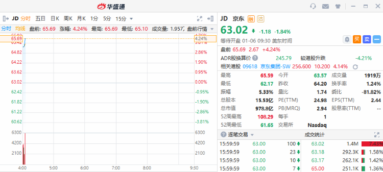 华盛资讯1月6日消息,美股盘前,部分热门中概股上扬,京东(JD)涨超4%,拼多多(PDD)、新东方(EDU)、贝壳(BEKE)涨近3%,阿里巴巴(BABA)涨近2%,腾讯音乐(TME)、爱奇艺(IQ)涨近1%。