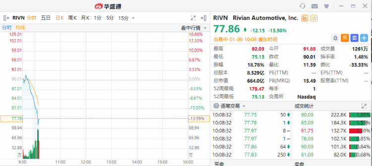 新能源车股中,Rivian $RIVN 一度跌超15%,总市值跌破700亿美元,股价跌至IPO发行以来的最低水平。消息面上,亚马逊 $AMZN 与Stellantis $STLA 达成采购电动货车协议,Rivian地位受动摇股价下挫。