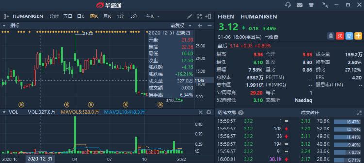 过去12个月对于药企Humanigen $HGEN 恐怕不太好过,该公司股价在此期间跌超80%。不过现在投资者可以关注一下该公司旗下新冠药物lenzilumab的最新进展,这或许会让其股价在今年出现转机。