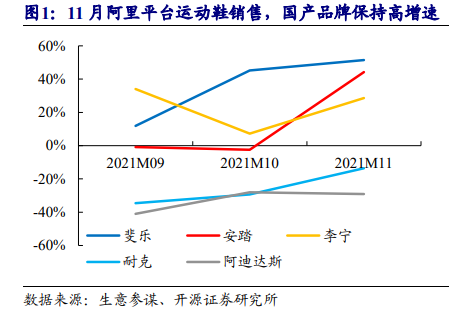 根据电商数据显示,Q4李宁的电商销售增速有所放缓。据阿里平台运动鞋服数据,2021年Q4李宁平台增速为33.15%,这相对于Q3全渠道40-50%的流水增长,确实有所下滑。