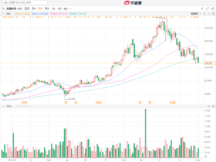 2022年开局,李宁股价的下挫与其2021年四季度的业务有一定关联。