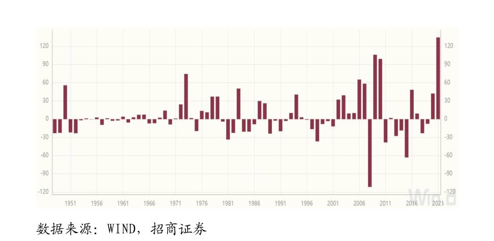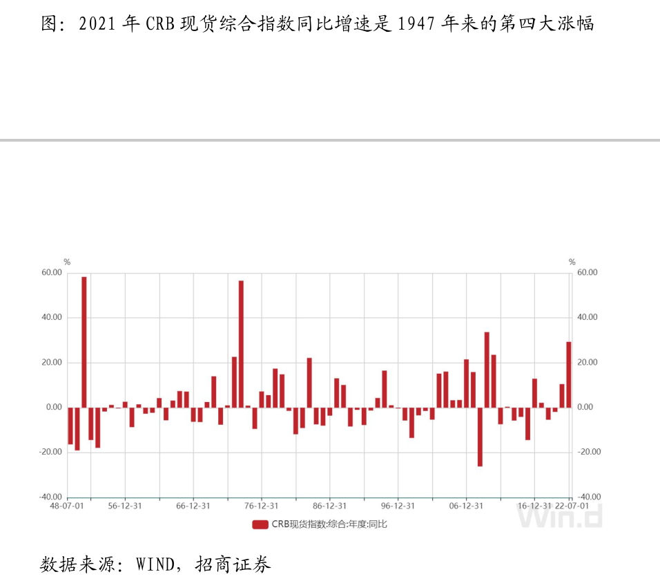 图:1948年以来CRB现货综合指数年度绝对值变化