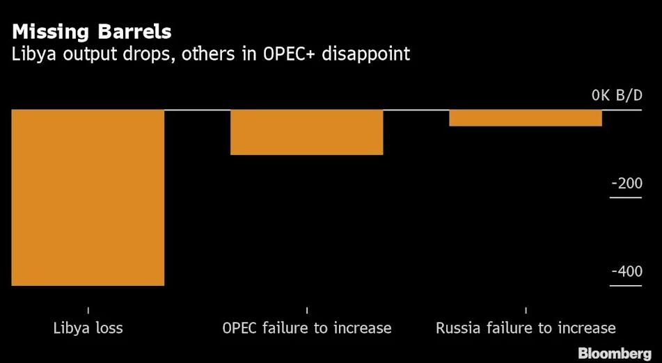 与此同时,利比亚国家石油公司(NOC)本周也表示,利比亚石油产量已从去年130万桶/日的高位降至72.9万桶/日,受维护和油田关闭影响。
