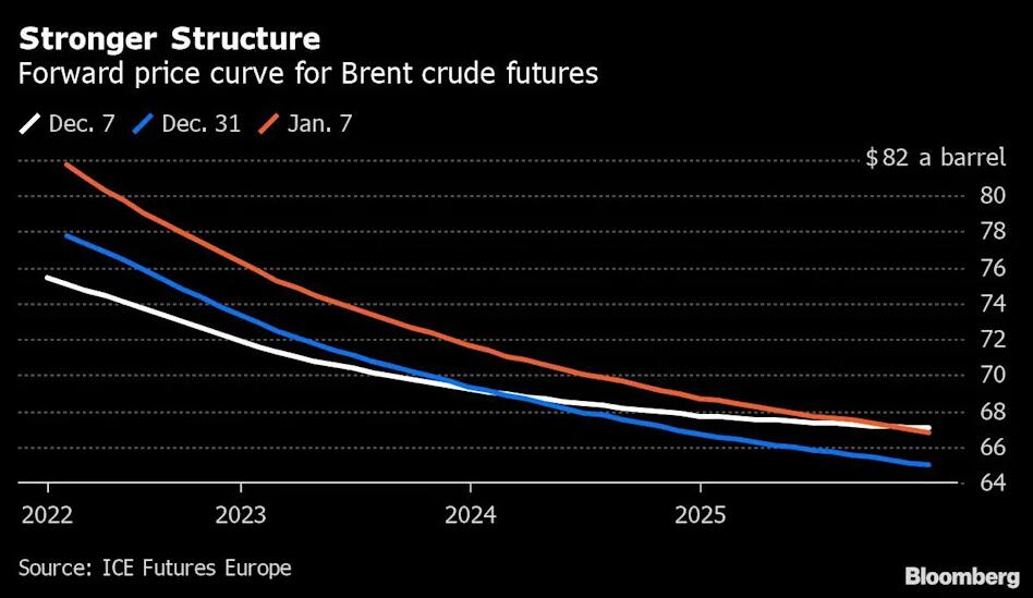 在原油期货价格上涨的同时,油价远期曲线也正变得更加看涨,近月合约相较更远期合约的溢价明显拉大,表明买家愿意支付更高的价格,以更快地获得原油。目前,布伦特原油3月合约期货价格比4月合约高出约70美分/桶。而一个月前,这一数字仅为35美分。布兰特原油期货的六个月逆价差约为每桶升水4美元,为去年11月末以来最阔。
