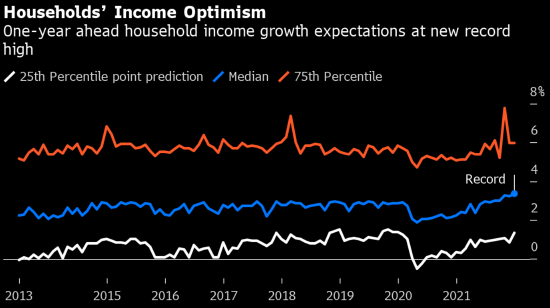 纽约联储报告显示,收入增长前景改善,升至新高。