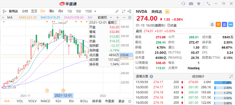 此外,值得关注的是,美股Q4财报季即将启幕,英伟达最新财报也将公布。当前分析师预计英伟达收入为74.2亿美元,同比增长48.32%;每股收益1.22美元,同比增幅将达56.41%。