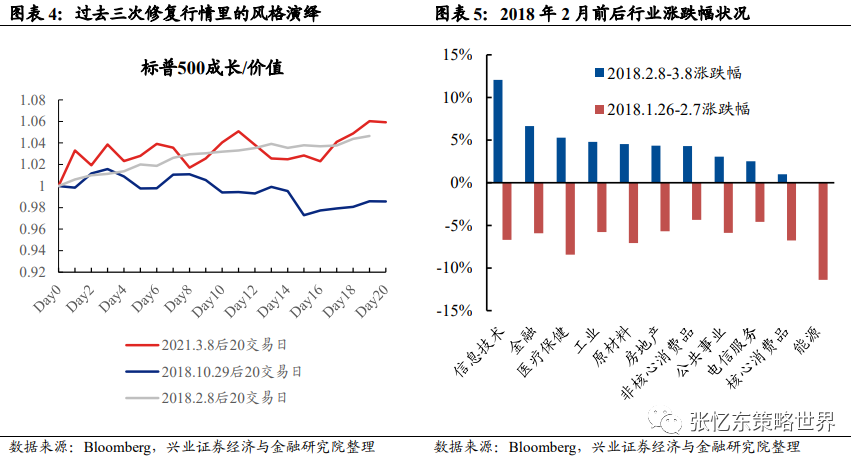 2021年2月美股调整之后,呈现出调整越多则反弹越强烈,前期被抑制的成长风格反弹更强,信息技术、可选消费领涨、成长风格强于价值。