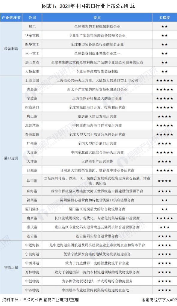 原标题:【最全】2022年港口行业上市公司全方位对比(附业务布局汇总、业绩对比、业务规划等) 来源:前瞻产业研究院