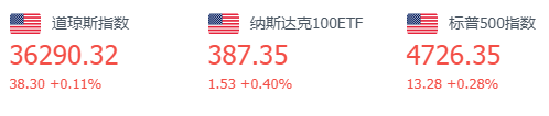 美股周三小幅收高,纳指录得连续第三个交易日上涨。道指涨38.30点,涨幅为0.11%,报36290.32点;纳指涨34.94点,涨幅为0.23%,报15188.39点;标普500指数涨13.28点,涨幅为0.28%,报4726.35点。