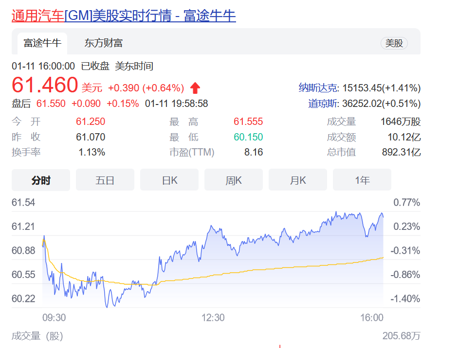 首先是最先“破釜沉舟”全力转型的通用汽车,股价连创历史高位。目前通用股价已经来到60美元/股,是近10年来最佳表现。