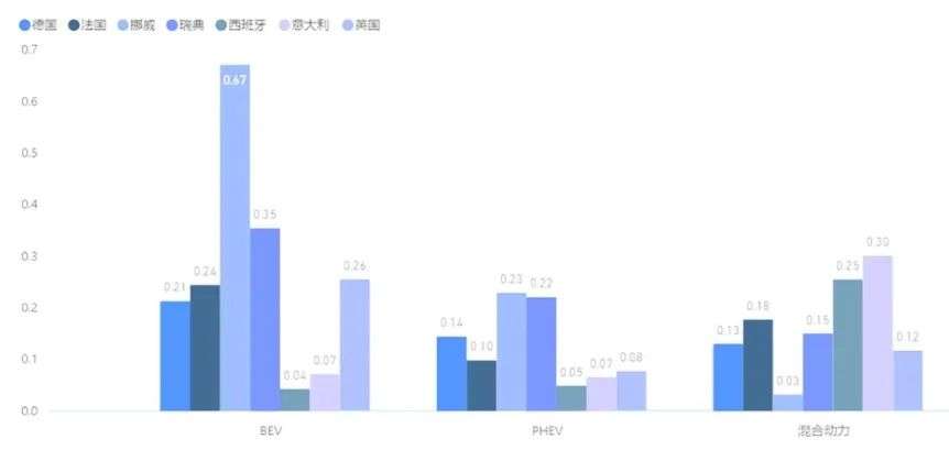 正是在政策的支持下,今年欧洲主要七国的新能源汽车渗透率大多超过20%,这给欧洲车企的新能源车型们创造出成长的空间。