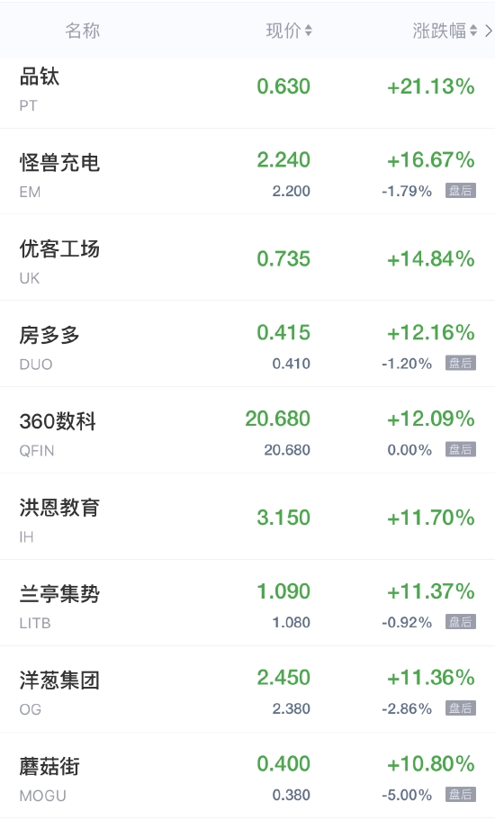 (截图来自新浪财经APP 行情-美股-中概股热门板块)下载新浪财经APP