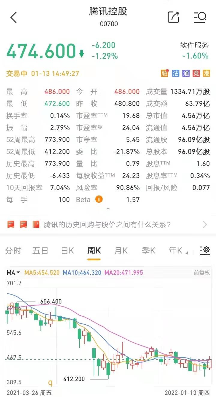2021年,恒生科技指数全年跌幅高达32%,创出上市新低,多数互联网龙头股腰斩,腾讯从年初高点773港币下跌至450港币以下,阿里、美团、拼多多全部腰斩。