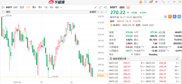 华盛资讯4月27日消息,今日美股盘前,微软 $MSFT 涨超5%,Q3营收同比增长18%超预期,旗下智能云等业务收入均录得增长。