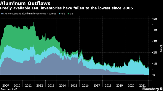 包括铝和镍在内,伦敦金属交易所监管仓库的金属库存再度下降,加剧了导致近期金属价格上涨的供应担忧。