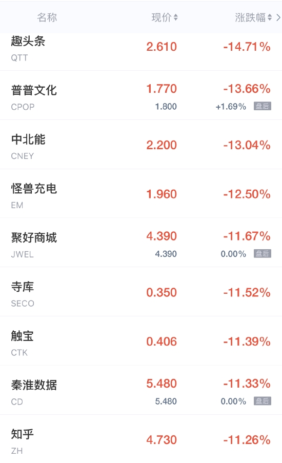 (截图来自新浪财经APP 行情-美股-中概股热门板块)下载新浪财经APP