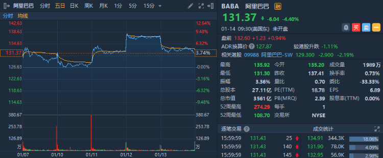 华盛资讯1月14日消息,今日美股盘前,热门中概股涨跌不一。