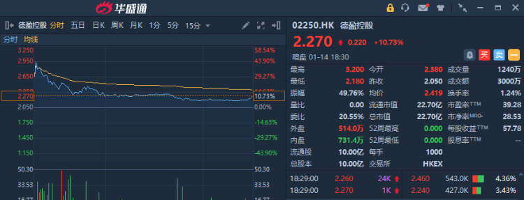华盛资讯1月14日讯,IP运营商德盈控股 $02250.HK 暗盘收涨10.73%,一手账面浮盈220港元,最新总市值22.7亿港元。该股预计将于下周一(1.17)正式挂牌上市。