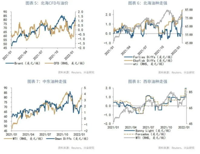 原本按照2022年全球原油项目投产计划以及OPEC增产计划,全球原油供需能够维持在紧平衡状态,使得市场能够从2021年油价大涨的冲击中得到喘息。不过正如我们此前所述,这一判断的风险在于,在目前全球原油库存低位下,商品市场对突发性供给短缺应对能力很低。如果出现突发性的供给短缺,2022年这一基准判断有较大上行风险,而目前这一风险正在逐步变为现实。