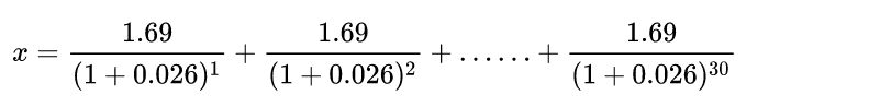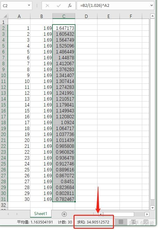 这个现金流折现的计算和大约是 34.905 左右。可这里还有个重要细节,我们这里未来现金流折现对应上面的例子,是未来3000元的利息收入,本金10万是没计算进去的。