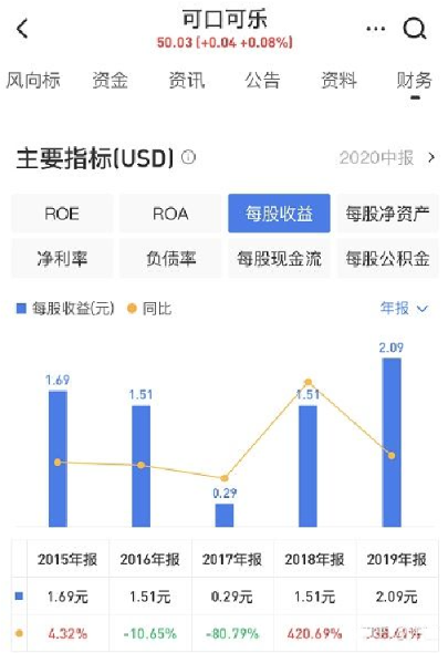 那如何来算呢?要知道一家公司给股东带来的收益,摊到每股里的财务指标叫 EPS (earning per shares),这才是可口可乐公司作为一个资产给股东创造利润的一个适用于现金流折现模型店定量指标。