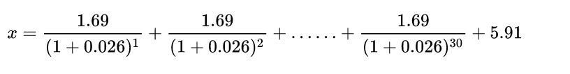 折合每一股,公司账面上的净资产是 5.91美元,这包含了可口可乐的配方、品牌和设备等。所以,有了本钱和未来现金流,我们得到了:
